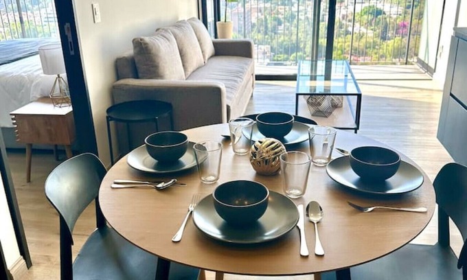 Discover luxury in Guadalajara! Our elegant apartment in Punto Sao Paulo offers a modern design, spacious rooms and stunning views from a terrace ideal for relaxing. Located in a vibrant area, you will enjoy an excellent gastronomic and commercial offer, perfect for business or leisure travelers. With easy access to the best destinations in the city, your stay will be unforgettable. Book now and live Guadalajara to the fullest!