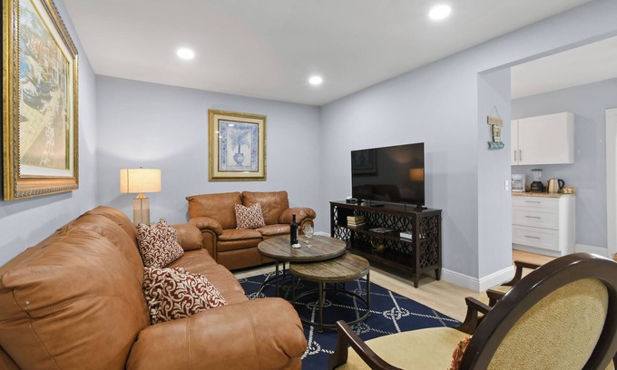 ✔ Relax in a family room furnished with a comfortable couch and loveseat, central air for comfort, a 55" HDTV with Roku for entertainment, and fast Wi-Fi to stay connected.