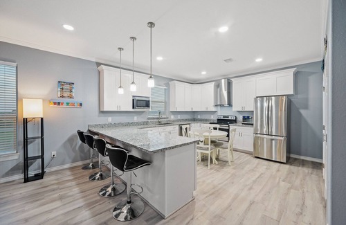 This is a new home built in 2022 that sleeps up to 12. Our new, exceptionally spacious, and pristine home, was crafted with endless amenities that will provide the ultimate, 5-star stay. The modern home offers the most seamless stay you can hope for. Take a break from the world and feel like you are in your own little resort with these beachfront views! Envision yourself waking up with a coffee in-hand, the warm sun on your face, & only steps away from the beach.
