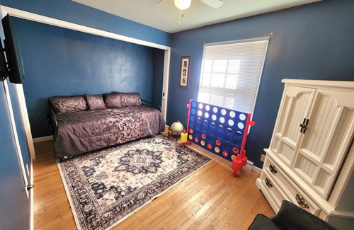 Welcome to this beautiful home in Racine, the perfect getaway for your next vacation! This spacious property features 4 cozy bedrooms, including a luxurious king bed, a comfortable queen bed, a full bed, and two twin beds. With 3 bathrooms, each equipped with thoughtful amenities like a hairdryer, shampoo, conditioner, and towels you'll feel right at home.