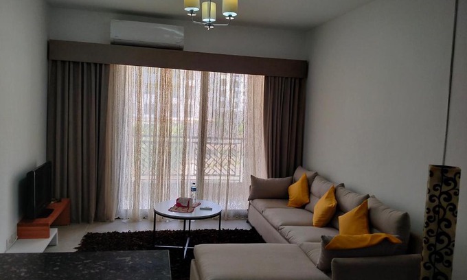 Providing a garden, New Capital Celia apartment offers accommodations in Madīnat al Amal. This property offers access to a balcony and free private parking. Opening onto a terrace with garden views, the spacious apartment consists of 2 bedrooms. The air-conditioned apartment also provides a flat-screen TV, a fully equipped kitchen with a microwave, a seating area, washing machine, and 1 bathroom with a hot tub, a bath, and a shower. AUC New Cairo is 20 miles from the apartment. Cairo International Airport is 30 miles away.