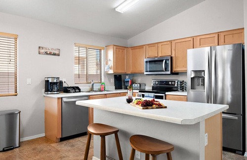 Discover a haven of peace and luxury in this beautifully appointed 3-bedroom, 2-bathroom, single-story oasis. Perfectly situated between Tucson and Phoenix, our home provides a serene retreat for your desert adventures. Whether you're lounging by the pool, enjoying a BBQ dinner, or exploring the local attractions, every moment here promises relaxation and joy.