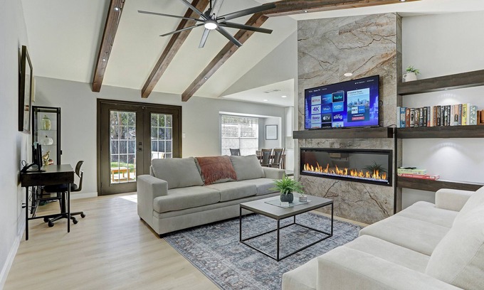 NEW Charming 3BR 2BA w/Modern Fireplace by Domain @ Q2 Stadium has 3 Bedrooms , 2 Bathrooms, and max occupancy of 8 people. The minimum rental for this property is 1 nights, but this can change depending on the season you plan on staying. Previous guests have given good rated it, and VRBO labeled it a top-rated House because of the excellent services rendered by the owner or manager of this House, and has consistently provided great experiences for their guests. Most families or guests that use it recommend it to their friends and some of them are repeat guests. House has a friendly neighborhood, and the North Austin Civic Association has interesting places to visit. If you want to learn more about the House in North Austin Civic Association, such as places to visit and things to do nearby, you can check below to learn more.