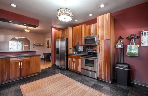Kitchen has everything you need to make this house feel like a home. Keurig coffee maker, all pots/pans/baking items/flatware/dinnerware included. Large refrigerator, electric stove, oven, and dishwasher.