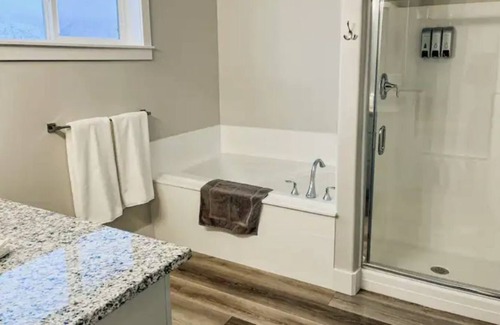 This space includes the whole townhome including two car garage. Built August 2022. BRAND NEW mattresses (king, queen, full and twin) and linens, weighted blankets available. Spacious and very clean. Fully stocked kitchen. Easy to find.