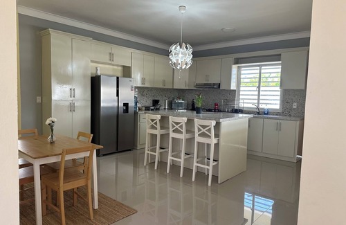 This exquisite property features 3 spacious bedrooms, each with its own private bathroom and air conditioning. The home includes a fully equipped kitchen, a comfortable living area, a dedicated workspace, and a large open garage for convenient parking.
