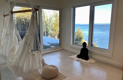 You will enjoy the pleasures of radiant floors throughout the house. The tranquility is assured with its two master bedrooms upstairs with their own bathroom. The other two bedrooms are on the garden level where you also enjoy a breathtaking view of the river. Sounds of the waves included! You can sit comfortably in front of a fire or even watch a good movie in our home theater. If you feel like it, you can relax in our Zen corner with its hanging chairs, ottomans and yogas mats.