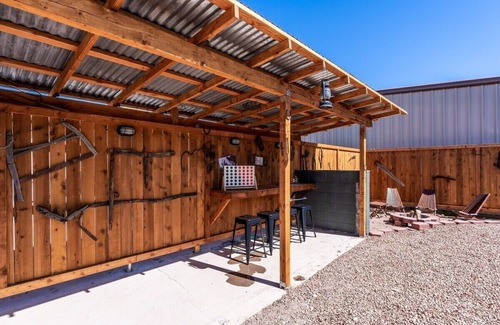 Outside, you can cook a delicious meal in the outdoor kitchen area which includes a grill, sink, and countertop space. Enjoy your meal in the cozy seating area next to the fire pit. The fire pit is perfect for roasting marshmallows and enjoying the spectacular Tombstone night Sky.