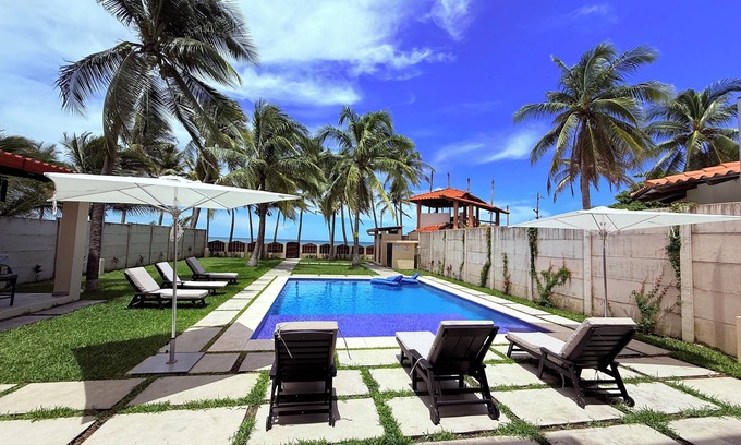 Are looking for a Private beach front house to relax and enjoy time with your family, then this is the best home in the area. This Home has wonderful landscaping, coconut trees, mangos and other fruit trees, Plus endless ocean views and relaxation at it best.