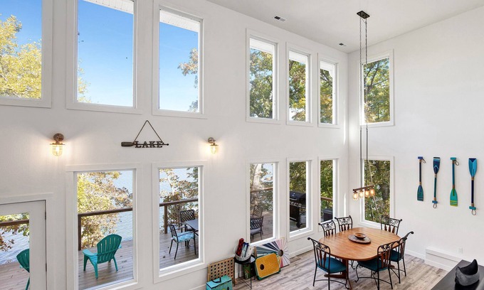 Soaring Eagle is a perfect getaway for family and friends! This amazing newly constructed home is nestled into a an overlook surrounded by trees and privacy. You will enjoy the views from the elevated deck or venture to the lakefront Fire Pit as evening settles in.