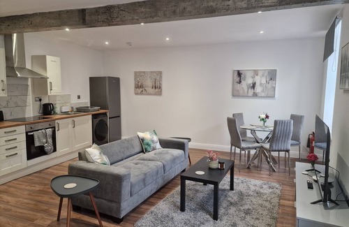 Situated in close proximity to Burnley Town Centre, Burnley Manchester Road train station and with easy access to major cities Manchester and Leeds, this peaceful idyllic apartment is perfect for those who are visiting beautiful Lancashire whether holidaying, working in the area or just up to visit friends! The open plan kitchen/lounge area has a breakfast bar and dining table suitable for those who need to work from home. Super fast broadband is included in your stay.