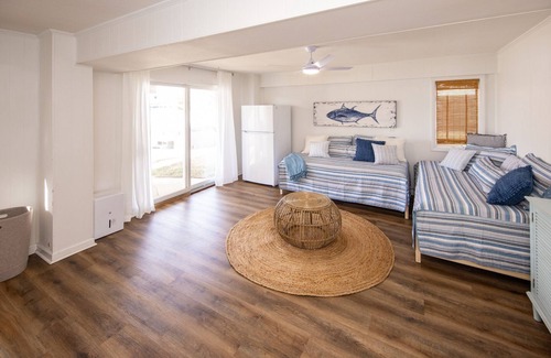 Let every day be an, "Easy Day" in this newly renovated seaside retreat! Just steps to the beach, this stunning Semi Oceanfront home is sure to be a family favorite. With 2 Kings, 2 Queens, and 2 Twin beds there's room for everyone including your furry friend! The first floor of this home offers two bedrooms with plenty of sleeping. You will find an expansive bedroom with 2 twins, (these are stackable so there is actually 4 Twins if you unstack) a second refrigerator, large screen TV, foosball 2024, and access to the pool deck- the size of this room makes for a very diverse space. The second bedroom on this level is a King with access to a Hall Bath & large screen TV. The second floor of this home has a gracious amount of living space including a spacious open concept floor plan with a dining table perfect for large meals, board games, or a puzzle. There is an East facing King bedroom on this level with an ensuite bath and large screen TV as well as two other bedrooms, both Queens, with access to a Hall Bath with Tub. All of the bedrooms have updated bedding, ceiling fans, and large screen TV's for your enjoyment. Ocean facing decks provide the ideal location to enjoy your morning coffee while taking in the spectacular Sandbridge sunrise. You may even catch a glimpse of a dolphin or two!