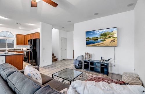 A warm, centrally located and spacious Gilbert destination with luxury features awaits you! This home is full of amenities to keep you busy and designed with quality furnishings to create a comfortable and exciting stay. In the upgraded outdoor space, you’ll be greeted with a quiet and relaxing pool, featuring a waterfall, and two outdoor fire places! The heart of home welcomes you with a 75’ smart tv and a full size ping pong table. Our main goal is to give you an unforgettable experience.