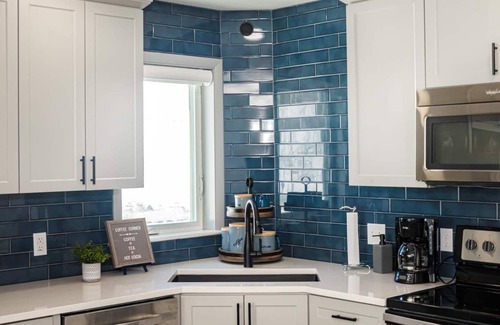 The kitchen has all you will need for preparing meals including full size appliances and kitchenware. Supplies for cooking and baking, some basic spices, place settings for 12, a drip coffee maker, coffee grinder, crock pot, blender and toaster and more are available for your use. There is a high chair/booster seat and dishes/utensils for the little ones.