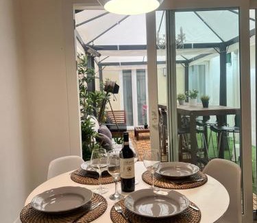 Food & DrinkTea/Coffee makerBathroomBathtub or shower, Hairdryer, Walk-in shower, Toilet, Private bathroom, Body soap, Free toiletries, Towels, Toilet paper, Shampoo, ShowerMedia & TechnologyFlat-screen TV, TVGeneralCarbon monoxide detector, Air conditioning, Interconnecting room(s) available, Fire extinguisher, Ironing facilities, Private entrance, Heating, Smoke Alarm, Iron, Trash cansKitchenWine glasses, Cleaning products, Stovetop, Dishwasher, Kitchenware, Electric kettle, Oven, Coffee machine, Dining table, Microwave, Kitchen, Refrigerator, Kitchenette, Washing machineOutdoorsOutdoor dining area, Outdoor furniture, Balcony, Terrace, PatioLiving AreaDining area, Sitting areaBedroomLinens, Childrens' cribs, Wardrobe or closetAccessibilityShower chair, Entire unit wheelchair accessible, Entire unit located on ground floor, Toilet with grab railsBuilding CharacteristicsPrivate apartment in buildingRoom AmenitiesNon-feather pillow, Drying rack for clothing, Clothes rack, Socket near the bed, Adapter, Fold-up bedViewInner courtyard viewPhysical distancingSingle-room AC for guest accommodation |