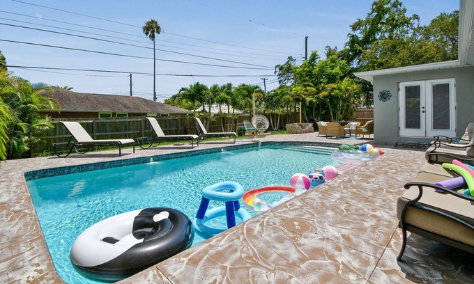 Welcome to House Honeysuckle, your perfect tropical retreat near Clearwater, where you can indulge in a blissful vacation surrounded by comfort and convenience. Centrally located to everything, Watch the beautiful sunset soaking in fresh heated (fee applies) saltwater either in our pool, or by the beach!