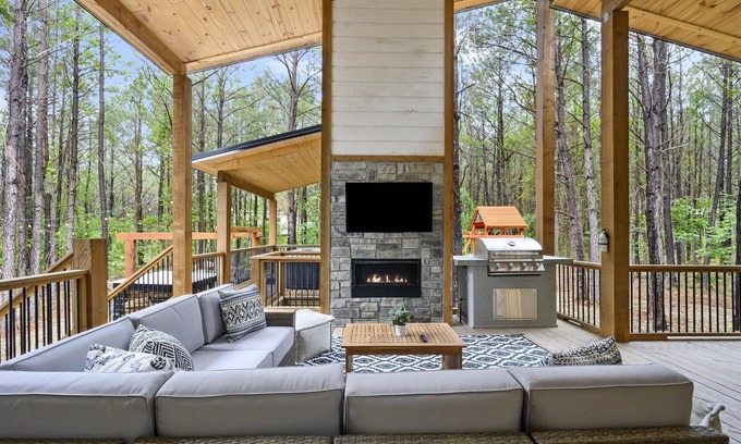 NEW! This pet friendly cabin features three spacious and tastefully decorated bedrooms, perfect for a good night's rest after a day of adventure. The two master bedroom boasts comfortable king-sized beds, while the third bedroom has 2 sets of bunk beds perfect for the kids to have their own space make memories.