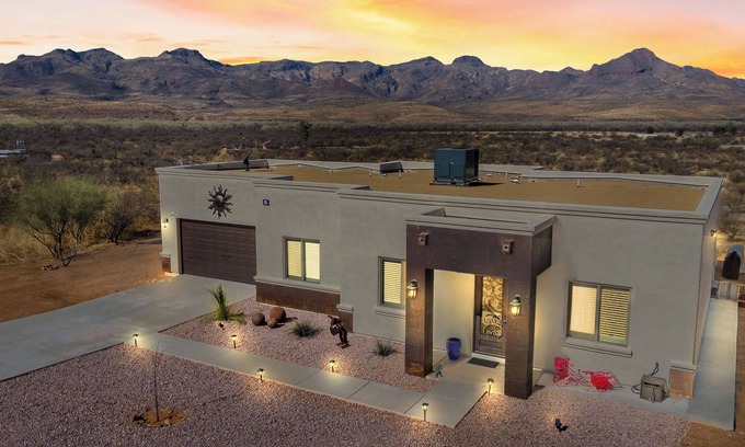 3 BR 2 Bath 2 Car Garage lovely furnished home on hillside with large covered patio overlooking the Santa Cruz River valley and mountains beyond to the west. Modern stucco house was built by local reputable builder in 2019 using top quality energy efficient construction materials. Relax on your covered patio and enjoy the stunning Arizona sunsets and amazing wildlife in the valley below. Take Exit 25 from I-19 only 10 minutes from Tubac and near to local golf, dining and other attractions such as Tumacacori National Historical Park.