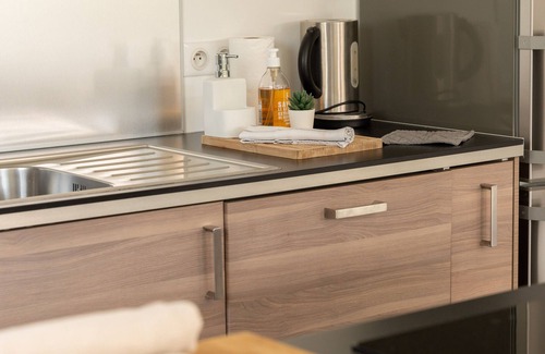 Kitchen (oven, microwave, dishwasher, induction hob, fridge / freezer with 3 drawers),