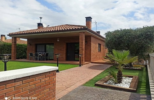 The villa is located on a plot of 750 meters, 150 built. It has 4 rooms, 2 of them of marriage (1 suite) and 2 doubles. 2 full bathrooms, large dining room with ground fire and large fully equipped kitchen (washer, dryer, dishwasher, drinking water, fridge, oven, microwave, coffee maker, toaster, kettle ...). It has heating, and Spanish and foreign television channels.