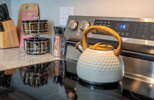 Inside, you'll find brand new furnishings, including a deluxe king memory foam bed and two TVs—one in the living room and one in the bedroom. Relax and unwind in the beautifully designed space, equipped with everything you need to feel at home.