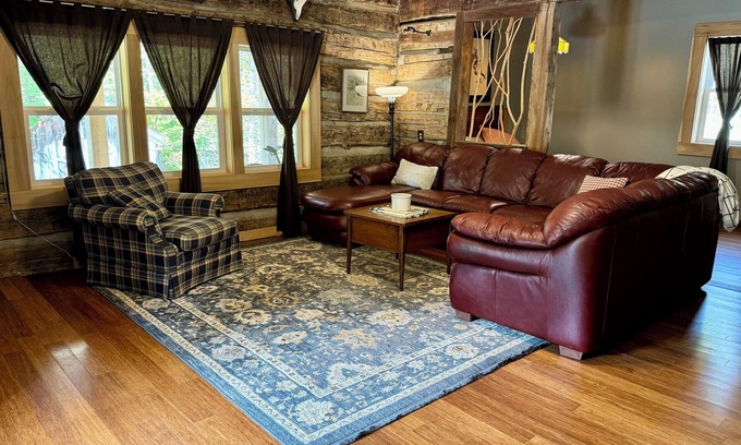 Inside, you'll find a comfortable living area with hand hewn logs from the early 1900’s. Loft style second story unique with open bedroom and bath. Clawfoot bathtub for a truly deep dish experience. The fully equipped kitchen allows you to prepare meals of any size.