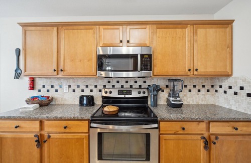 Inside, you’ll find a fully equipped kitchen with stainless steel appliances,