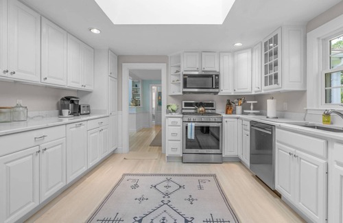 - Fully equipped kitchen. Stainless steel appliances, skylight, and plenty of space for cooking meals at home. Keurig and drip coffee maker.