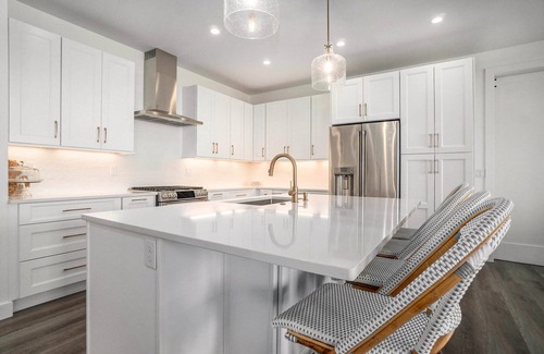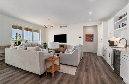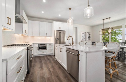 Spacious and comfortable, this custom-built home radiates with abundant natural light and ample space for groups and families to gather together, including both indoor and outdoor dining tables seating up to 10 guests. The fully-equipped kitchen is a showstopper with all-new GE Café appliances, including a dual fuel double oven, and filtered water from the Café refrigerator.