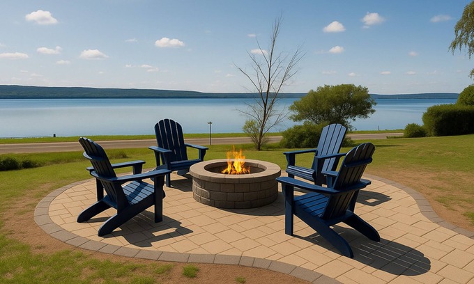– Lake view gas fire pit with paver surround