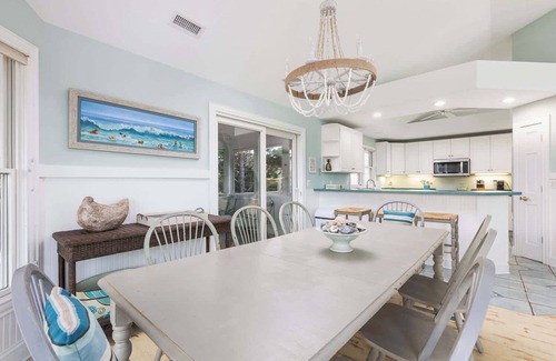 Welcome to Cape Carolina, your idyllic coastal retreat in Duck. This delightful home offers the perfect blend of comfort, beach access, and ample space for family gatherings, featuring plenty of dining options and a private pool and hot tub.