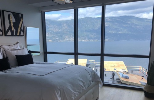 So happy to invite you to stay at my brand new Luxe Lakeview condo, over looking Lake Okanagan from every room, 2 bed (1 new hotel Queen bed & 1 new hotel King bed), high quality everything! linens, gel pillows, silk pillow cases,2 baths, heated floors in master bath, XL patio w new cozy sectional & fire table. Nespresso coffee, Gas range, upscaled stocked kitchen, Ninja instant pot/air fryer, will please the chef in you! Epic common rooftop patio with hot tub & lake view pool (seasonal).