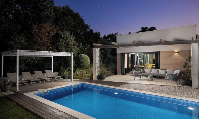 New luxurious modern villa with pool near Pula is located in Liznjan. New luxurious modern villa with pool near Pula provides accommodation, featuring Pet Friendly, Pool, Private Pool, among other amenities. This Villa features Pet Friendly, Pool, Private Pool, to make your stay a comfortable one.