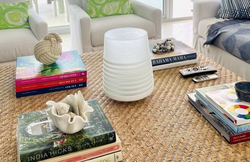 Upon stepping through the doors of Holiday House, you will be welcomed into the barrel ceilinged foyer, equipped with a built-in bar with a refrigerator, icemaker, and bar accessories. The foyer leads into the great room with an expansive, 17-foot vaulted cathedral ceiling. From this room, there are sweeping, uninterrupted views of the ocean. In the great room you will find a dining table that seats eight and comfortable seating area with a large Smart TV outfitted with DIRECTV and Apple TV. The home is equipped with Sonos sound system, WiFi, split system ACs throughout, a back-up generator, back-up water supply, a filtered water system throughout, safes in all bedroom closets, books, games, and puzzles, and much more.