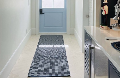 Inside the gourmet kitchen, you will find an expansive nine-foot quartz island with counter stools for gathering, stainless steel appliances, four- burner gas range, full size refrigerator, dishwasher and ample kitchen appliances.