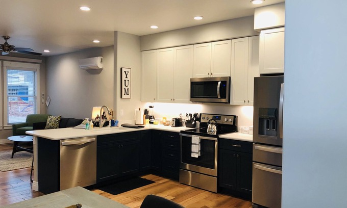 This condo features an open concept first level with a half bathroom, free WiFi, large flat screen, smart TV (with cable so you can enjoy the big game!), Blu ray player and a sleeper sofa couch. If cooking is your passion you'll enjoy using our fully stocked kitchen with all of your essential cooking tools provided and complete with a dishwasher as well as a grill for your outdoor BBQ needs. Our kitchen includes complimentary coffee, teas, and much more for your convenience.