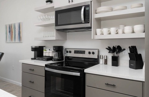 Featuring 3 bedrooms with super comfy high end mattresses, fast Wi-Fi, a grand master king bedroom, Tesla charger in the private garage, a designer kitchen, coffee bar!