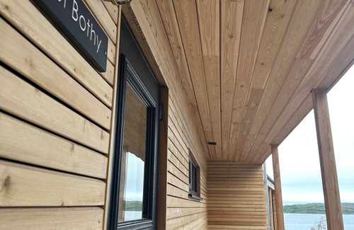 Both bothies were completed in 2025 and carefully designed to maximise the spectacular sea and hill views from each room. The fully enclosed deck provides privacy to relax and enjoy the ever changing scenery. Seals, porpoises, dolphins and otters can often be seen in the bay.