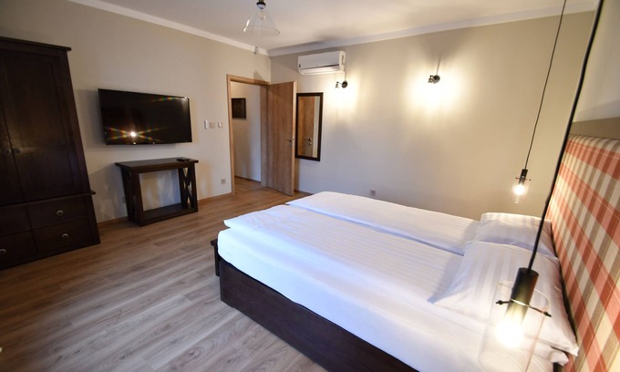We recommend this accomodation to large families or groups of friends who favor safe, relaxing recreation after the bustle of the city centre. Parking space (with video surveillance) is provided for up to 2-3 vehicles.