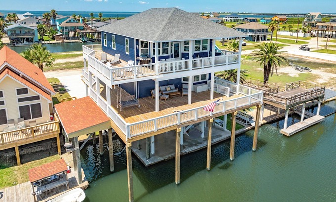 NEW Luxury Waterfront @San Luis Pass 2 Primary Suites, Family Friendly Sleeps 18 | House in Freeport