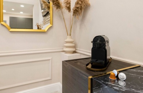 The 30sqm apartment has a large KING SIZE BOX SPRING BED (1.80 mx 2.00 m), 55 inch SMART TV, free NETFLIX, WiFi, modern kitchenette including NESPRESSO coffee machine. Coffee capsules, selection of teas. Towels, hotel bed linen, shower gel, shampoo and hairdryer are available to you free of charge.