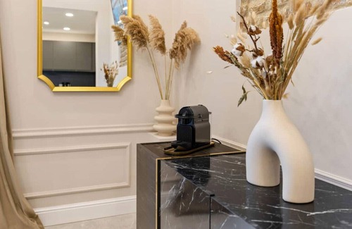 The apartment impresses with its uniquely high-quality furnishings and is a testament to the highest quality. The 30 sqm apartment has a KING SIZE BOX SPRING BED, 55 inch SMART TV, free NETFLIX, WiFi, modern kitchenette including NESPRESSO coffee machine, capsules and selection of teas.
