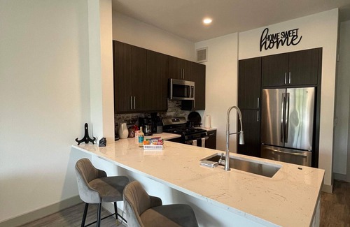 New! Master Suite w/Skyline Views - Art Dist is located in Washington Ave./ Memorial Park. New! Master Suite w/Skyline Views - Art Dist provides accommodation, featuring Accessibility, Security/Safety, Bedding/Linens, among other amenities. This Apartment features Accessibility, Security/Safety, Bedding/Linens, to make your stay a comfortable one.