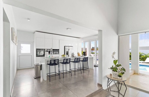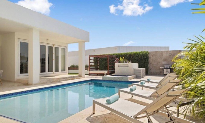 Immerse yourself in your private outdoor slice of Aruba! Let the meal cook on the grill while mixing tasty cocktails the group will enjoy after cooling off in the swimming pool. This stunning haven is a perfect retreat for guests who don't feel like leaving the property every day.