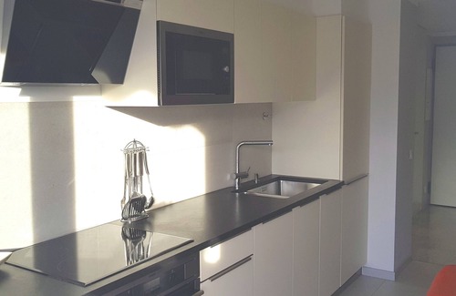 You will find a large living room with a sunny terrace, fully furnished kitchen with washing machine and dishwasher, one large bedroom with a balcony, separated toilet and a cosy modern bathroom.