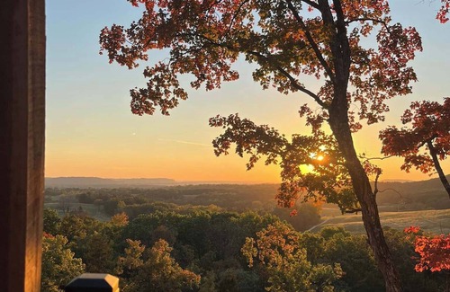 A unique Treehouse, 6 miles from Hermann, MO, offers a luxury escape with stunning views and sunsets. Perched on stilts by Daniel Boone Conservation Area, enjoy tranquility, hiking, and wildlife. Relax in a king-size bed beneath skylights, soak in a tub, or unwind in the hot tub and firepit. Just a mile from the Katy Trail, perfect for cycling or relaxing. Explore Hermann’s wineries, shops, and events. Transportation available from Hermann Trolley, Uber & Lyft. Sleeps 2 adults.