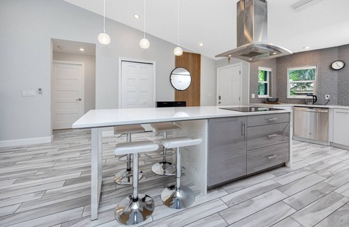 Recently remodeled, this single-story home offers luxury amenities and an ideal layout for friends and family seeking a relaxed, comfortable Florida retreat. Enjoy the open concept layout with vaulted ceilings in the living area, equipped with a huge flat screen Smart TV. The fully stocked kitchen includes everything you need for home-cooked meals and comes with a starter kit of complimentary coffee supplies so you can start off your mornings right.