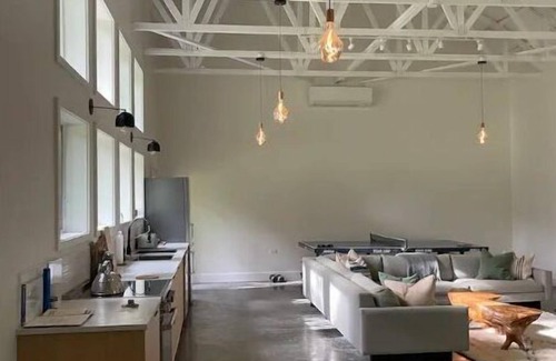 This clean, newly renovated, pet free, modern, 1500 sqft, private retreat has a giant main room, with barn like vaulted ceilings and exposed wood beams. Modern newly renovated kitchen with a Bertazzoni stove, fully stocked kitchen great for cooking. Living room has a huge large L shaped Room & Board sofa, ping pong table with paddles / balls and board games. Plus lots of additional open space. A great space for kicking back after a day on the trails, or exploring the area.