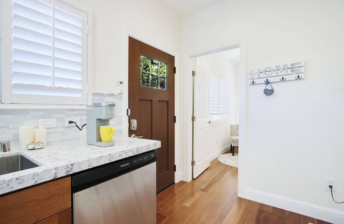 ****PRIVATE & SEPARATED GATED ENTRY W/ YOUR OWN SPACE: This is an *attached* unit but has it’s own private and gated entry. As this is a corner lot, the guesthouse was designed so that that unit faces a different street from the main house and therefore has its own separate and private entry. The yards are separated by fence as well. You will not walk by the main house and you won’t see anyone. You will have direct access to the unit.