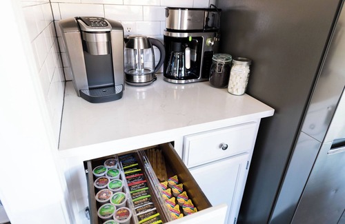 • Complimentary coffee filters, trash bags, paper towels, and dish washer pods, dish/hand soap provided